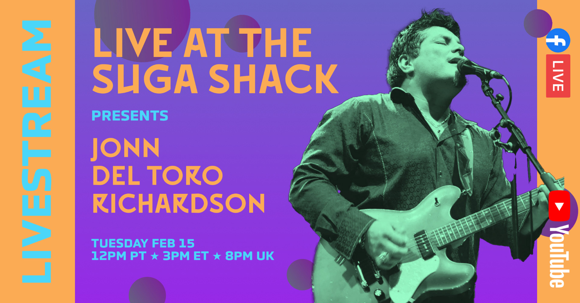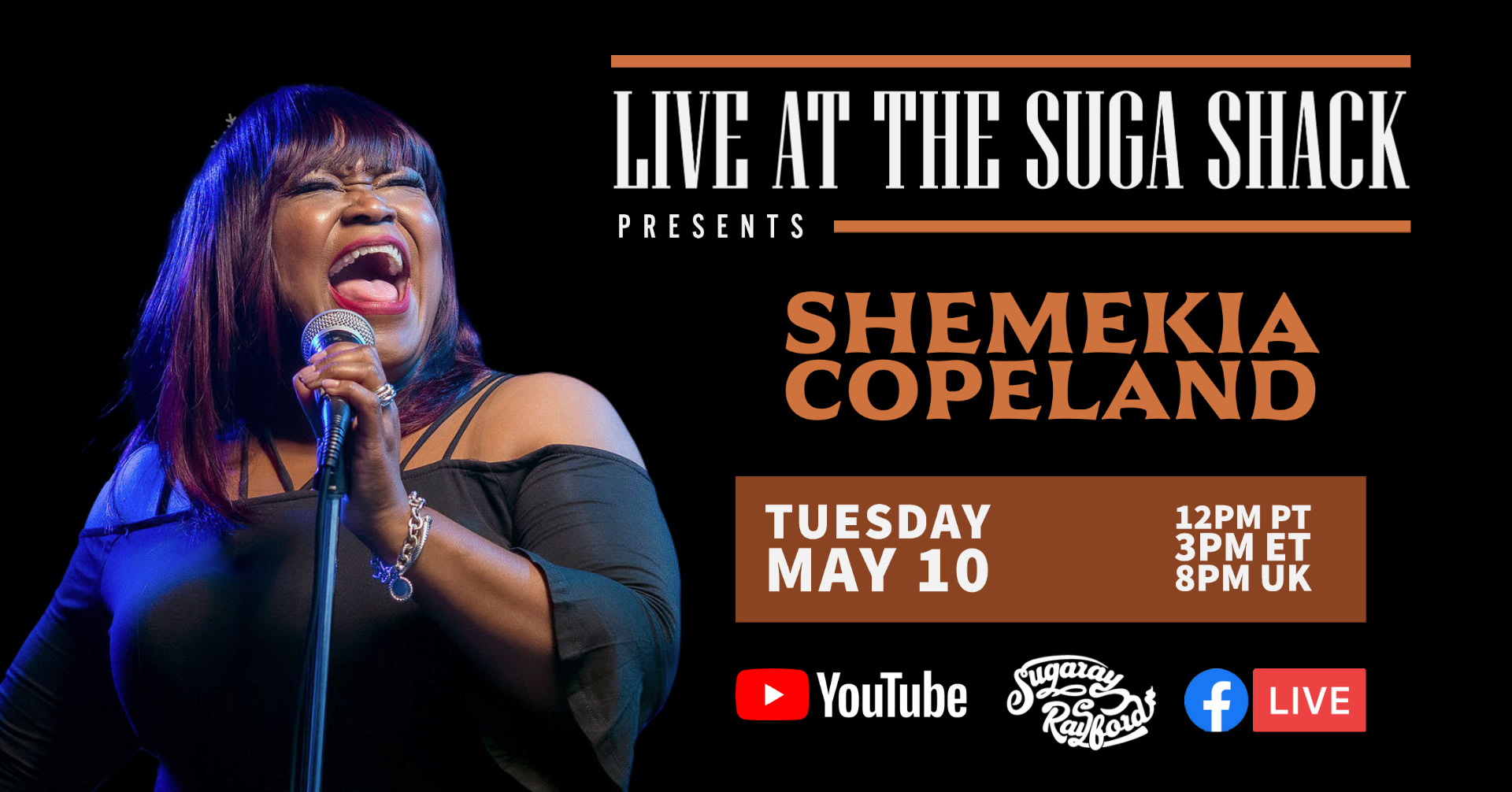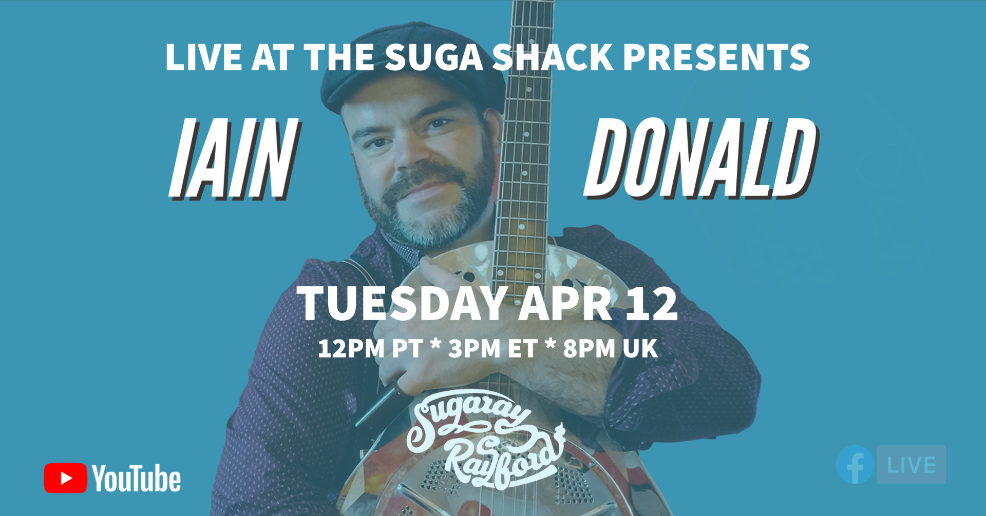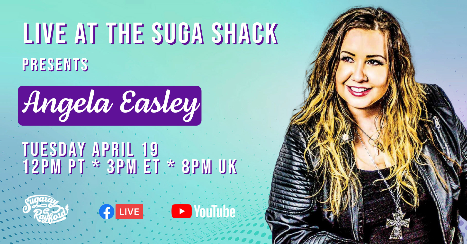 Every tuesday I help host a livestream for Sugaray Rayford, and prepare a graphic for socials to advertise the event before hand. Here's a sample of the many I have done: